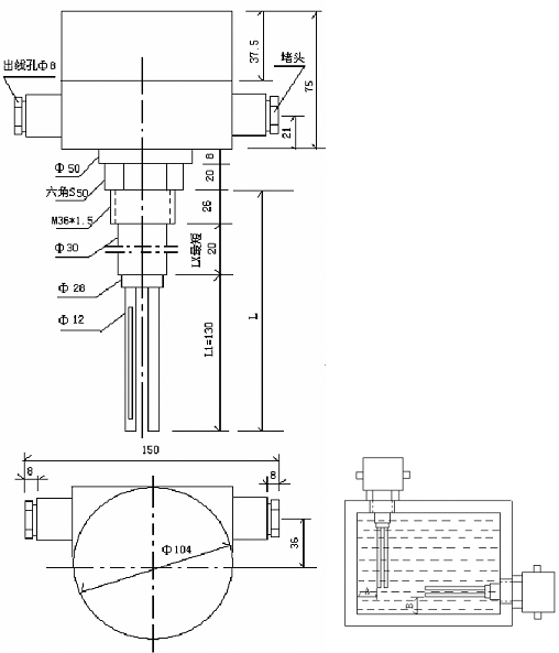6、傳感器長(zhǎng)度最短L≥176mm(特殊按用戶要求定做)
