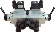 JCQF集成氣制動閥用于水電水輪發(fā)電機組轉(zhuǎn)速下降到額定轉(zhuǎn)速35-40%時,接受轉(zhuǎn)速信號繼電器的電氣信號,使此閥中制動電磁閥動作,將壓縮空氣通往制動腔,加速機組停機。當機組停機后,電氣信號使復(fù)歸閥動作,將制動腔復(fù)歸。在該閥上的電磁閥帶有手動功能,實現(xiàn)手動操作功能。同時在該閥上設(shè)有手動轉(zhuǎn)閥,實現(xiàn)手動操作功能。 機電一體化設(shè)計體積小,功能齊全。具有雙重手動功能,操作更簡便;具備手動、自動獨立工作,性能可靠。