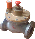 4)、在第二級導(dǎo)閥中設(shè)置手動操縱機構(gòu),正常電控時手柄應(yīng)中位對刻線。當(dāng)需手控時,拉起操縱手柄即可開閥,壓下手柄即可關(guān)閥,可實現(xiàn)手操功能(Ф25、Ф50無)。
