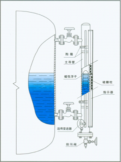 因運輸或其他振動,可能引起磁記憶開關(guān)接點狀態(tài)錯亂,在接線前,用磁鋼在連通管外上下拉動浮子,模擬動作一次,使磁記憶開關(guān)接點狀態(tài)恢復(fù)正常。然后再接線、投入使用。