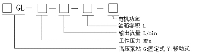 舉例:YGL-16-6-50-2.2:該型號(hào)為電站最常用型號(hào),表示移動(dòng)式高壓泵站、工作壓力16mPa、輸出流量6L/min、油箱容量50L、電機(jī)功率2.2Kw.